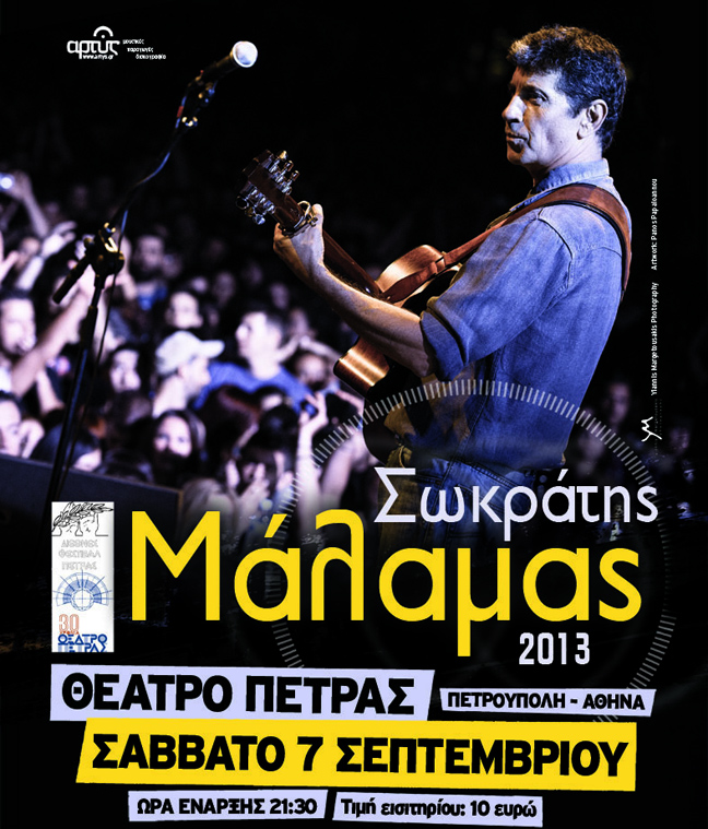 Ο Σωκράτης Μάλαμας μετά από μια πετυχημένη περιοδεία σε όλη την Ελλάδα αποχαιρετά το καλοκαίρι με μια μεγάλη συναυλία στην Πετρούπολη, στο Θέατρο Πέτρας, το Σάββατο, 7 Σεπτεμβρίου.