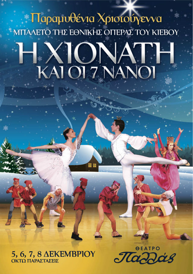 Ο Δεκέμβριος, μήνας των Χριστουγέννων και των παιδιών, θα «ανοίξει» την γιορτινή του ατμόσφαιρα με το Μπαλέτο της Εθνικής Όπερας του Κιέβου και το γοητευτικό παραμύθι των Αδελφών Γκριμ «Η Χιονάτη και οι 7 Νάνοι» που θα παρουσιαστεί για πρώτη φορά στην Ελλάδα στο Θέατρο Παλλάς.