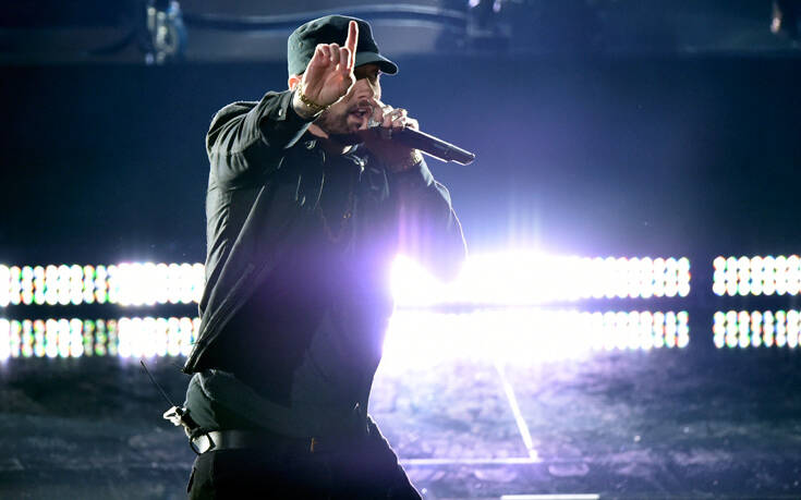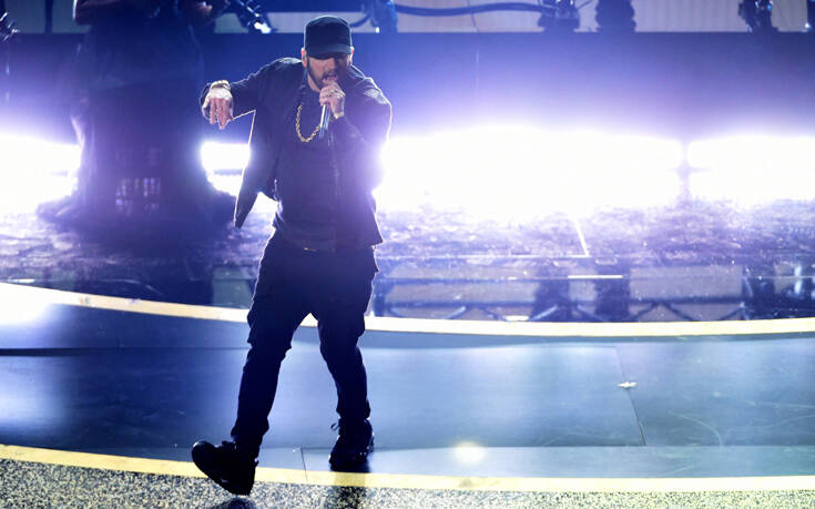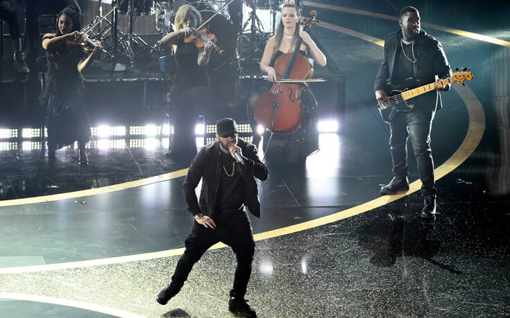 Ο 47χρονος ράπερ ερμήνευσε το τραγούδι «Lose Yourself», που είχε κερδίσει Όσκαρ το 2003 ως το τραγούδι της ταινίας «8ο Μίλι», με τους παρευρισκόμενους να τραγουδούν, ανάμεσα σε αυτούς ο Μπραντ Πιτ και ο Λεονάρντο Ντι Κάπριο. Στο τέλος της ερμηνείας το κοινό σηκώθηκε και δεν σταμάτησε να χειροκροτά τον Έμινεμ.