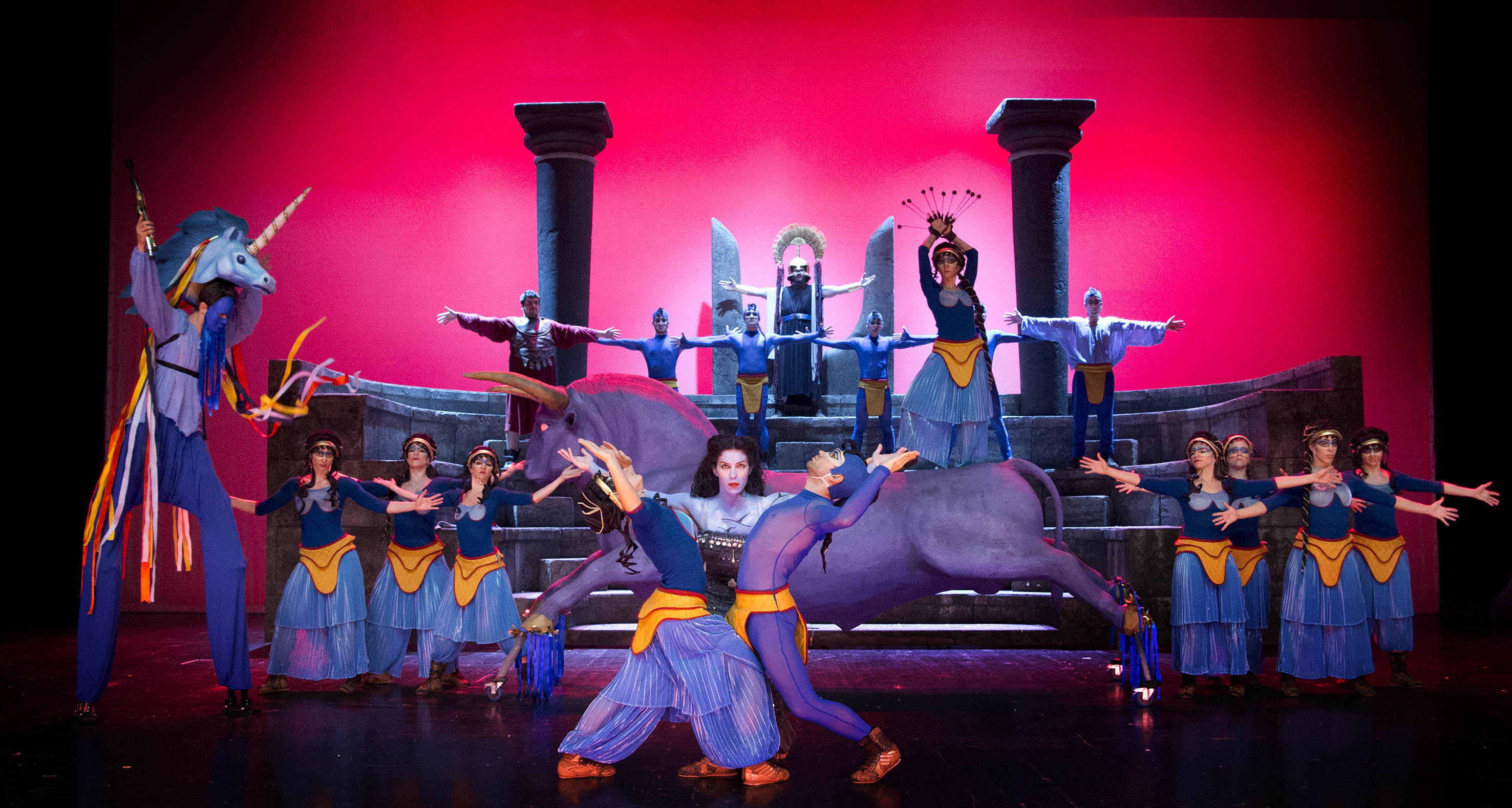 Ο Θησέας και η Αριάδνη στο Νησί των Ταύρων αγαπήθηκε περισσότερο από κάθε άλλη παιδική παράσταση τα τελευταία χρόνια: 60.000 θεατές απόλαυσαν ήδη την ιστορία του Θησέα, ο οποίος, μετά από άθλους που κόβουν την ανάσα, ταξιδεύει στην Κρήτη και, με τη βοήθεια των Θεών και της όμορφης Αριάδνης, κατατροπώνει τον Μινώταυρο. Στην περιπέτεια συμμετέχει όλη η ελληνική μυθολογία –ήρωες, θνητοί, υπέροχα αλλά και φοβερά υπερφυσικά όντα και ασφαλώς οι Ολύμπιοι Θεοί. Επί σκηνής παρελαύνουν παλάτια, θάλασσες, πλοία, λαβύρινθοι, γοργόνες, ταύροι, Θεοί που αναδύονται από τα έγκατα της γης ή πέφτουν από τον ουρανό.