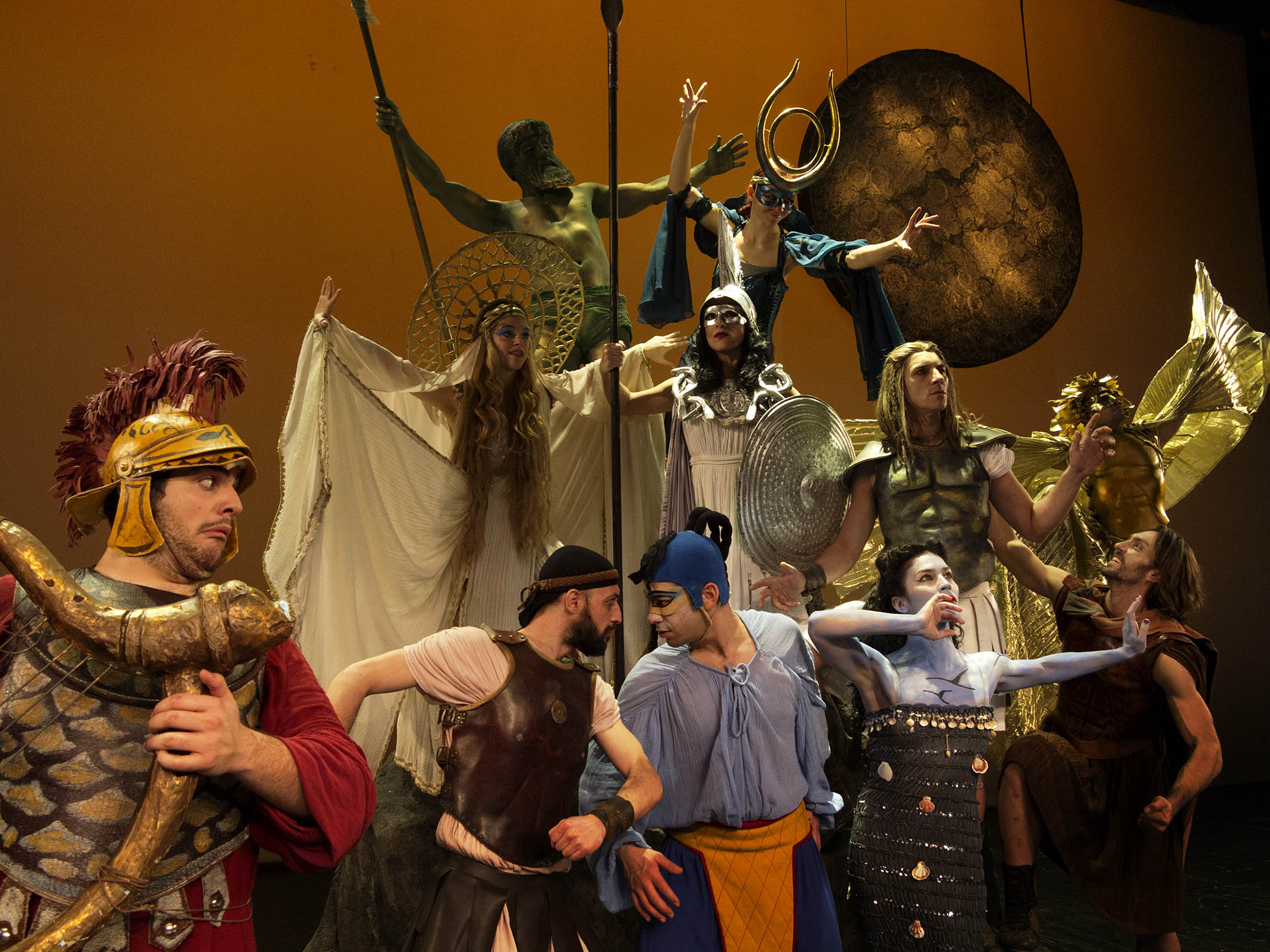 Περισσότεροι από είκοσι πέντε ταλαντούχοι καλλιτέχνες – ενάεριοι ακροβάτες, ηθοποιοί, τραγουδιστές, μουσικοί, δίνουν σάρκα και οστά στο μύθο.