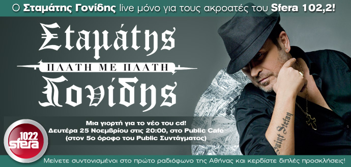 Τη Δευτέρα 25 Νοεμβρίου, στις 8 το βράδυ, στο Public Συντάγματος οι ακροατές του πρώτου ραδιοφώνου της Αθήνας, φίλοι και συνεργάτες του Σταμάτη Γονίδη θα γιορτάσουν μαζί του την κυκλοφορία του νέου του cd με τίτλο «Πλάτη με Πλάτη».