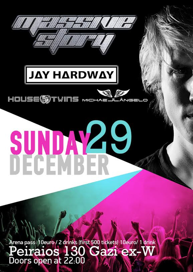 Το Massive Story επιστρέφει στις 29 Δεκεμβρίου για το τέταρτο κατά σειρά event. Ο Ολλανδός Dj και παραγωγός Jay Hardway με την σφραγίδα της Spinning records έρχεται πολλά υποσχόμενος για πρώτη φορά στην Ελλάδα.