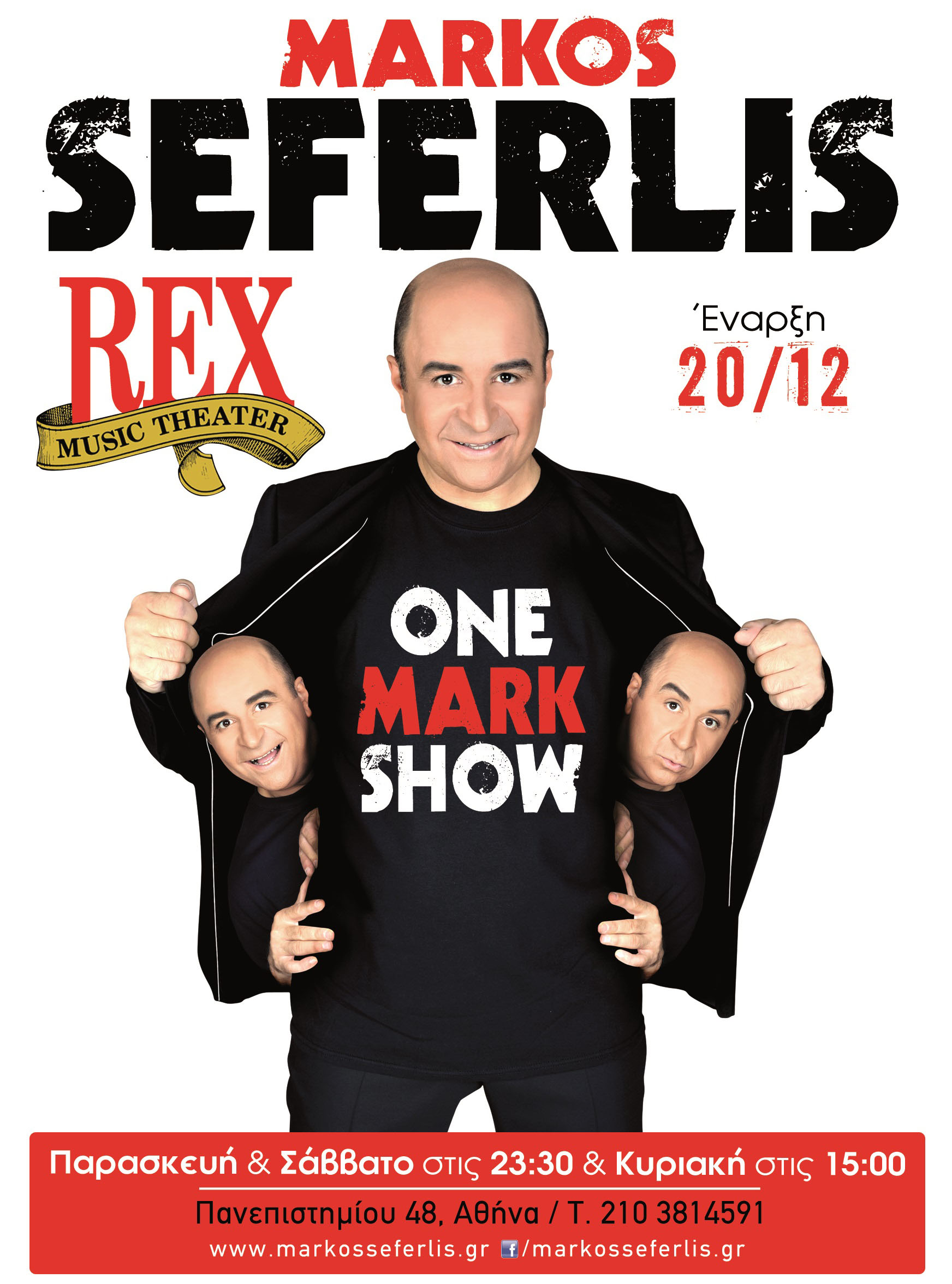 Στο νέο φαντασμαγορικό «ONE MARK SHOW» με τον Μάρκο Σεφερλή στο Music Hall «REX», θα απολαύσετε και τους Αλχημιστές (είναι οι ίδιοι, αφού ο Μάρκος δεν μπορεί να τους μιμηθεί, γιατί είναι πέντε) αλλά και πολλούς άλλους ηθοποιούς & χορευτές σε ένα θέαμα, που παρόμοιο δεν έχει υπάρξει στα ελληνικά χρονικά.