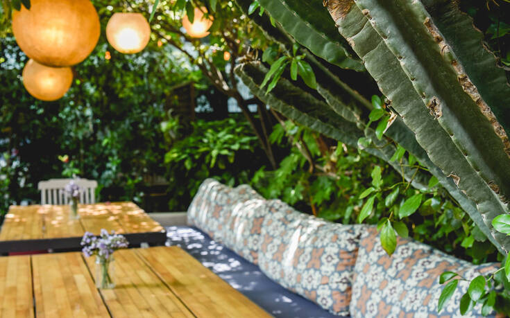 Ο χώρος θυμίζει μοντέρνο φιλικό σπίτι με αυλή, το κεντρικό τεράστιο τραπέζι προκαλεί την παρεΐστικη διάθεση, το μπαρ καλεί για happy cocktails, ενώ ο εξωτερικός κήπος αυτή την εποχή είναι όνειρο.