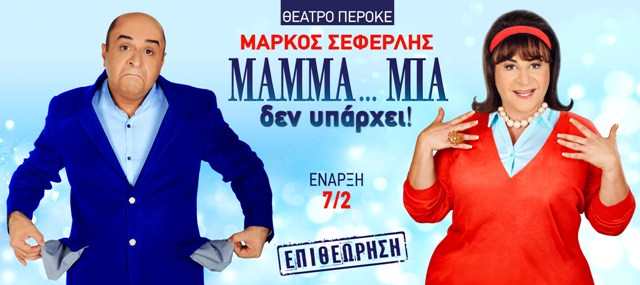 «ΜAMMA…MIA δεν υπάρχει» στην τσέπη, αλλά ευτυχώς υπάρχει πολλή διάθεση για σάτιρα και γέλιο μέχρι δακρύων -κι ας μην έχουμε μαντίλι να σκουπιστούμε- στη νέα επιθεώρηση του Μάρκου Σεφερλή στο θέατρο ΠΕΡΟΚΕ από την Παρασκευή 7 Φεβρουαρίου!