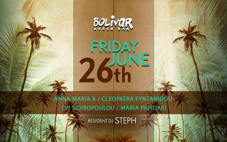 Tην Παρασκευή 26 Ιουνίου οι 4 πολυαγαπημένες Dj/ Radio Producers του Best Radio 92.6 καταλαμβάνουν το booth του Bolivar Beach Bar. Η Άννα Μαρία Χ, η Κλεοπάτρα Φυντανίδου, η Εύη Σιδηροπούλου και η Μαρία β θα μας ταξιδέψουν με τις επιλογές τους σε μια υπέροχη dance βραδιά γεμάτη deep, progressive και όχι μόνο ρυθμούς.