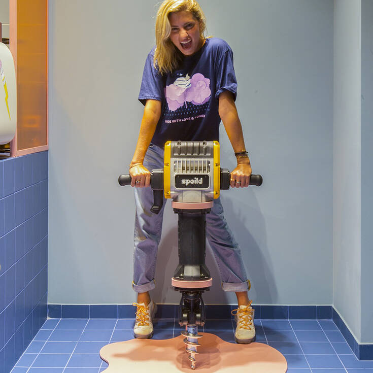 Το εντυπωσιακό Pop design του Spoild θυμίζει την αγαπημένη δεκαετία του 80’ και εκπλήσσει ευχάριστα, αφού δίνει μια «ανάσα» χρώματος στο κέντρο της Αθήνας.