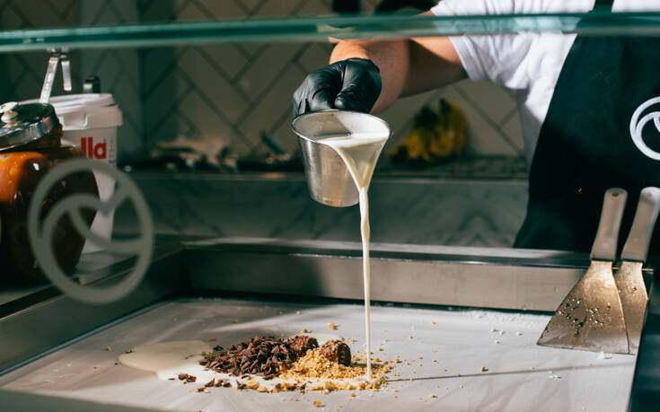 Πρόκειται για μία τεχνική, όπου φρέσκο γάλα, φρέσκα φρούτα και τα αγαπημένα σου υλικά πέφτουν σε μία παγωμένη πλάκα και γίνονται λαχταριστό παγωτό σε ρολάκια μπροστά στα μάτια σου.