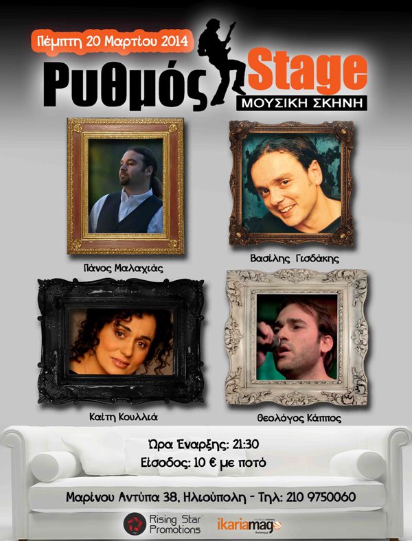 Την Πέμπτη, 20 Μαρτίου, ο Πάνος Μαλαχιάς, ο Βασίλης Γισδάκης, η Καίτη Κουλλιά και ο Θεολόγος Κάππος φιλοτεχνούν μια βραδιά γεμάτη μουσικές και σας προσκαλούν στη σκηνή του Ρυθμός Stage, με έντεχνο, ροκ και λαϊκό πρόγραμμα!
