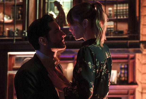 LUCIFER (L to R) TOM ELLIS as LUCIFER MORNINGSTAR and LAUREN GERMAN as CHLOE DECKER in episode 502 of LUCIFER Cr. JOHN P. FLEENOR/NETFLIX © 2020