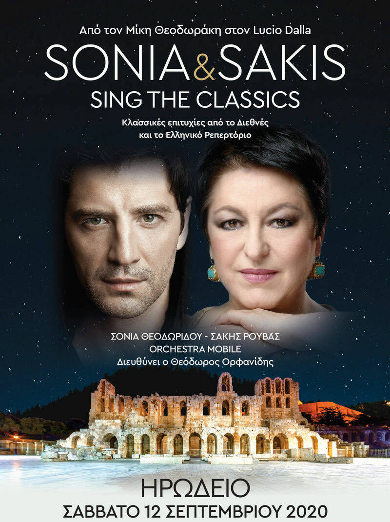Η διεθνούς φήμης σοπράνο Σόνια Θεοδωρίδου και ο κορυφαίος Έλληνας ποπ σταρ Σάκης Ρουβάς, στην πιο δημιουργική και ώριμη στιγμή του, θα ενώσουν τις υπέροχες φωνές τους για πρώτη φορά μαζί στο Ηρώδειο, πλαισιωμένοι από την Oρχήστρα Mobile, υπό την καθοδήγηση του Μαέστρου Θεόδωρου Ορφανίδη.