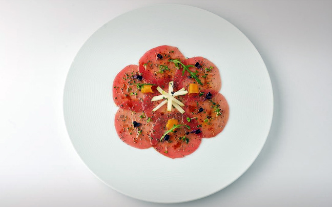– Carpaccio τόνου με αυγοτάραχο Μεσολογγίου