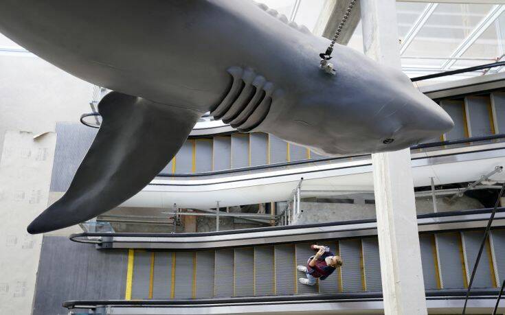 «Ο Μπρους ο καρχαρίας», όπως βαπτίστηκε σύμφωνα με τον δικηγόρο του σκηνοθέτη Στίβεν Σπίλμπεργκ, Μπρους Ράμερ, αιωρείται πλέον σε ύψος 9 μέτρων από το πάτωμα, στον τρίτο όροφο του μουσείου, που αναμένεται να ανοίξει στις 30 Απριλίου του 2021.