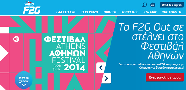 Στο πλαίσιο του F2G Out, του προγράμματος της WIND με τις καλύτερες προτάσεις κάθε μήνα για εξόδους σε σινεμά, θέατρα, εστιατόρια, συναυλίες, club ακόμα και spa σε Αθήνα και όχι μόνο, η αγαπημένη καρτοκινητή εξασφάλισε δωρεάν διπλές προσκλήσεις για τις δημοφιλέστερες παραστάσεις του φετινού Φεστιβάλ Αθηνών & Επιδαύρου 2014.