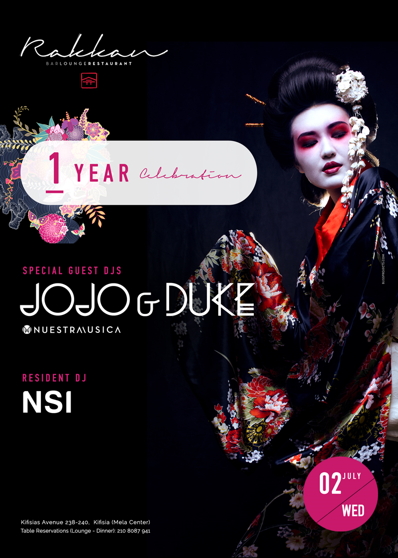 Στα decks την μουσική και το κέφι θα απογειώσουν οι special dj guests για εκείνο το βράδυ Jojo και Duke μαζί με το Νίκο Σύρμο (NSI) resident dj στο Rakkan!