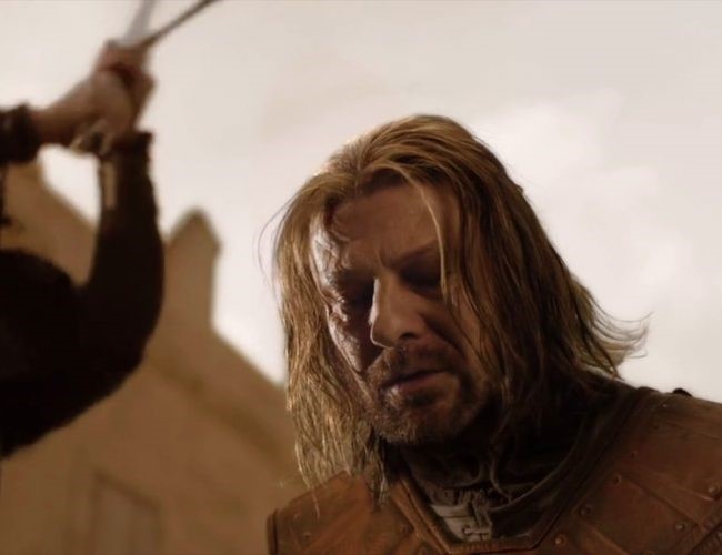 Ο Joffrey είχε υποσχεθεί ότι θα του χάριζε τη ζωή όταν ομολόγησε την προδοσία του, όμως την τελευταία στιγμή διέταξε τον αποκεφαλισμό του Ned αφήνοντας τους fans της σειράς σοκαρισμένους.