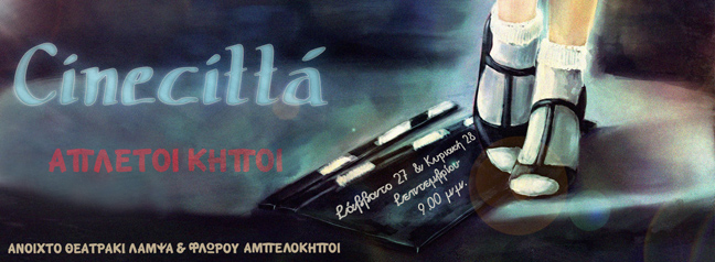 Τη μουσική κωμωδία «Cinecitta», των Θ. Παπαθανασίου και Μ. Ρέππα, σε μουσική και στίχους της Αφροδίτης Μάνου, παρουσιάζει η θεατρική ομάδα «Άπλετοι Κήποι» του Πολιτιστικού Συλλόγου Άνω Αμπελοκήπων, το Σάββατο, 27 και την Κυριακή, 28 Σεπτεμβρίου 2014, στις 9.00 μ.μ., στο ανοιχτό Θεατράκι Φλώρου και Λάμψα στους Αμπελόκηπους.