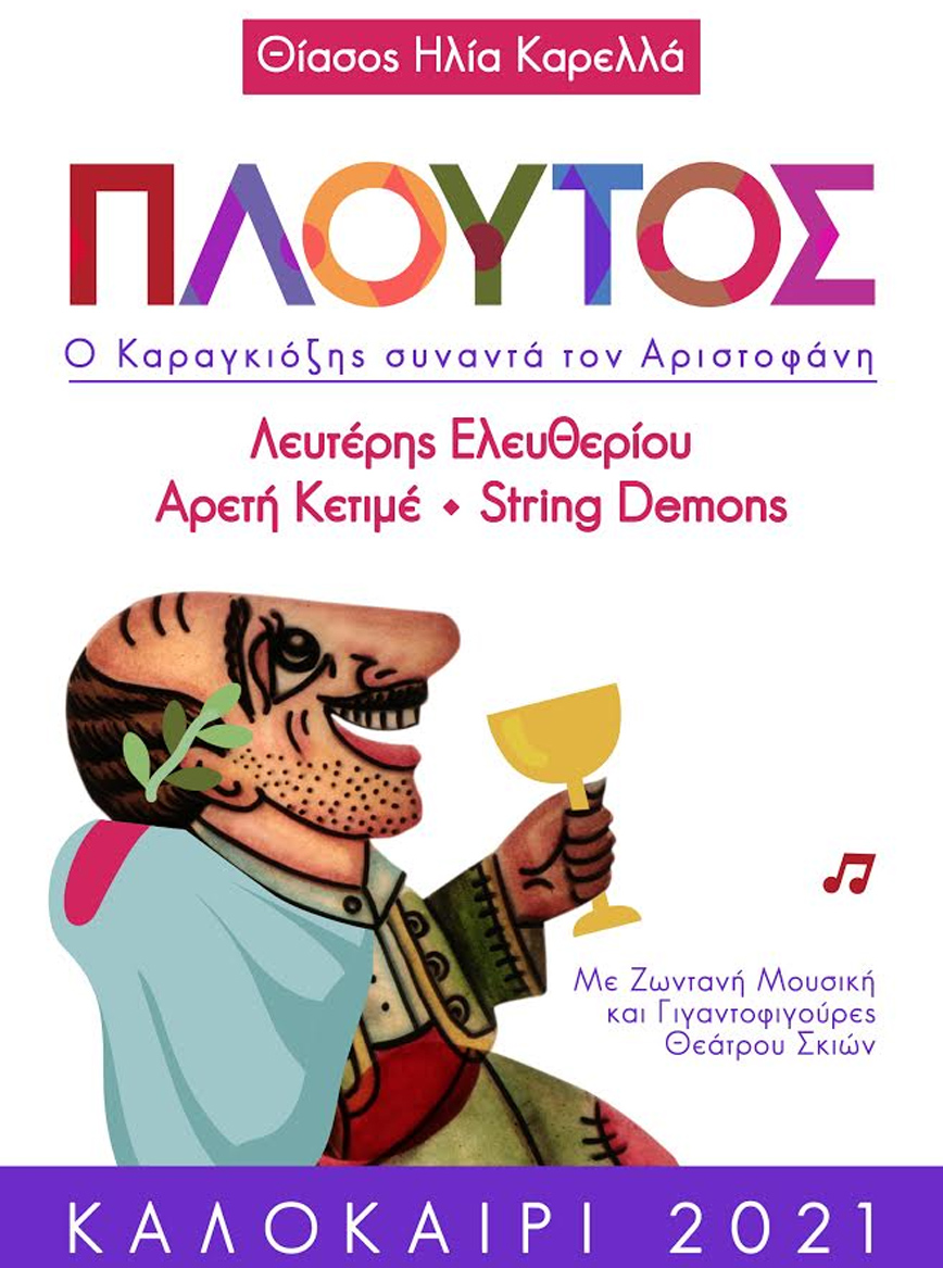 «Ο Πλούτος» του Αριστοφάνη, γίνεται παράσταση για παιδιά, από τον σκιοπαίκτη και σκηνοθέτη Ηλία Καρελλά, που οι παραστάσεις του στο Μέγαρο Μουσικής Αθηνών και στο Θέατρο Κάππα συγκινούν και ενθουσιάζουν το παιδικό κοινό τα τελευταία χρόνια, ο οποίος εμπνέεται από την τελευταία σωζόμενη κωμωδία του Αθηναίου σατιρικού ποιητή και δημιουργεί ένα έργο με πρωταγωνιστή τον Καραγκιόζη.