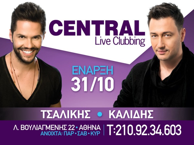 Ο επιτυχημένος μαέστρος και δημιουργός Κώστας Μηλιωτάκης επιμελείται ένα πρόγραμμα κομμένο και ραμμένο στα γούστα ακόμη και του πιο απαιτητικού θαμώνα… όταν μάλιστα σε αυτό, τον πρωταγωνιστικό ρόλο αναλαμβάνουν ο Γιώργος Τσαλίκης και ο Πάνος Καλίδης είναι κάτι παραπάνω από σίγουρο πως ο χάρτης της διασκέδασής σας θα δείχνει προς μια μόνο κατεύθυνση… Central Live Clubbing!