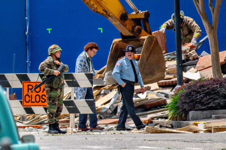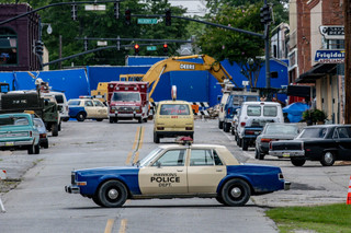 Παράλληλα στις υπόλοιπες φωτογραφίες μπορείτε να δείτε ένα κατεδαφισμένο κτίριο στους δρόμους του Hawkins.