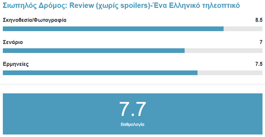Αναμφίβολα, η τηλεοπτική παραγωγή του Mega είναι υψηλού επιπέδου και μιάς και είναι της μόδας οι εξαγορές ξένων παραγωγών από το Netflix, θεωρώ πως ο Σιωπηλός Δρόμος θα μπορούσε άνετα να σταθεί μπροστά σε αντίστοιχες καλές σειρές του είδους (δεν μιλάω φυσικά για ασυναγώνιστες σειρές όπως το Broadchurch ή το Sherlock).