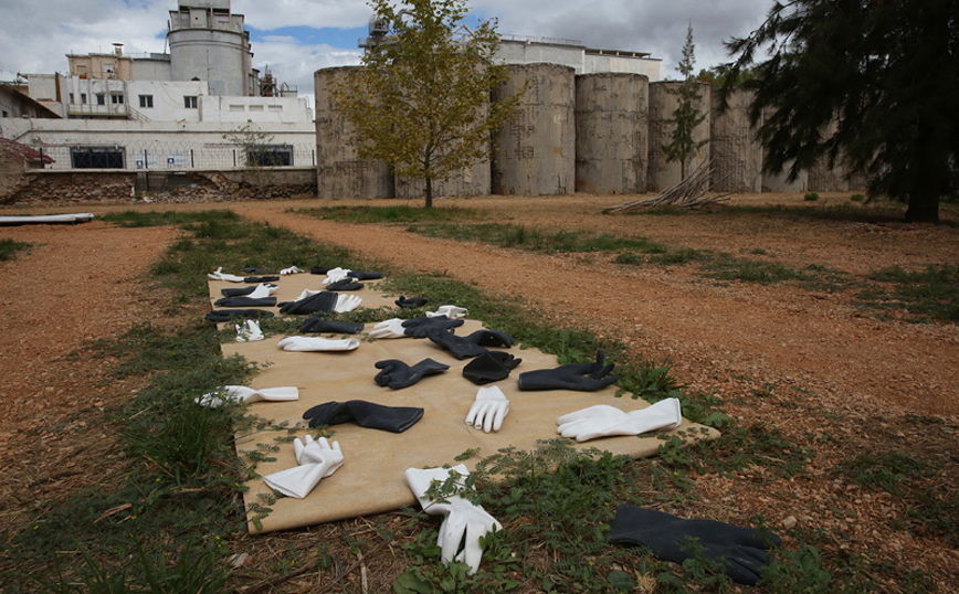 Τίποτε δεν είναι τυχαίο, λέει ο Ανδρέας Λόλης. «Τα γάντια που βλέπετε είναι τοποθετημένα σαν σύνολο στη γη. Είναι τα γάντια της δουλειάς μου, σύμβολο προστασίας ενώ πέντε από αυτά είναι τοποθετημένα με τρόπο που να σχηματίζουν στη νοηματική τη λέξη “μιλάω”, σαν μια κραυγή κοινωνική. Όλα μαζί ακουμπούν σ’ έναν μουσαμά, από αυτούς που χρησιμοποιούν οι αρχαιολόγοι για τα ευρήματα μιας ανασκαφής και αυτό εδώ δημιουργεί μια νέα κάνναβο».