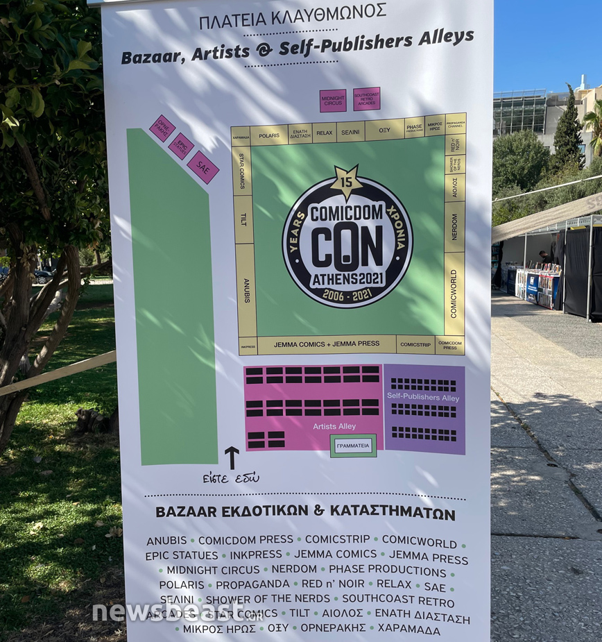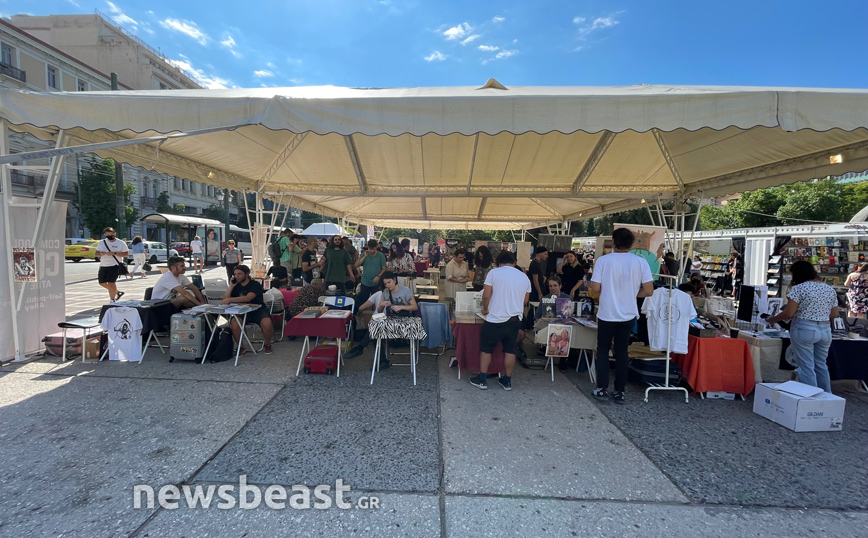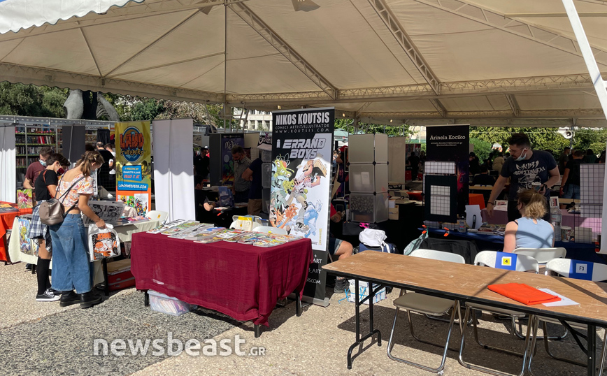 Στην Πλατεία Κλαυθμώνος έχουν στηθεί υπαίθρια καταστήματα comics και έχουν δώσει ραντεβού πάνω από 100 δημιουργοί comics.