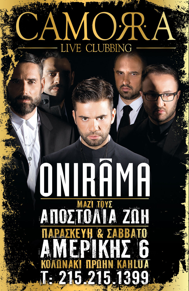 Η μεγάλη αγάπη του κόσμου που γεμίζει το Camorra κάθε Παρασκευή και Σάββατο, με επώνυμους και μη να γίνονται ένα αποτελεί πλέον συνήθεια στο νέο «στέκι» στο Κολωνάκι! Από νωρίς σχηματίζονται ουρές στην οδό Αμερικής από φίλους του πιο δυναμικού συγκροτήματος για να διασκεδάσουν στο ριζικά ανακαινισμένο Camorra (Αμερικής 6 & Πανεπιστημίου, Κολωνάκι) με τις αγαπημένες επιτυχίες των ONIRAMA, αλλά και με διασκευές ελληνικών και ξένων τραγουδιών, στον ιδιαίτερα διακοσμημένο χώρο εμπνευσμένο από άρωμα Ιταλίας.