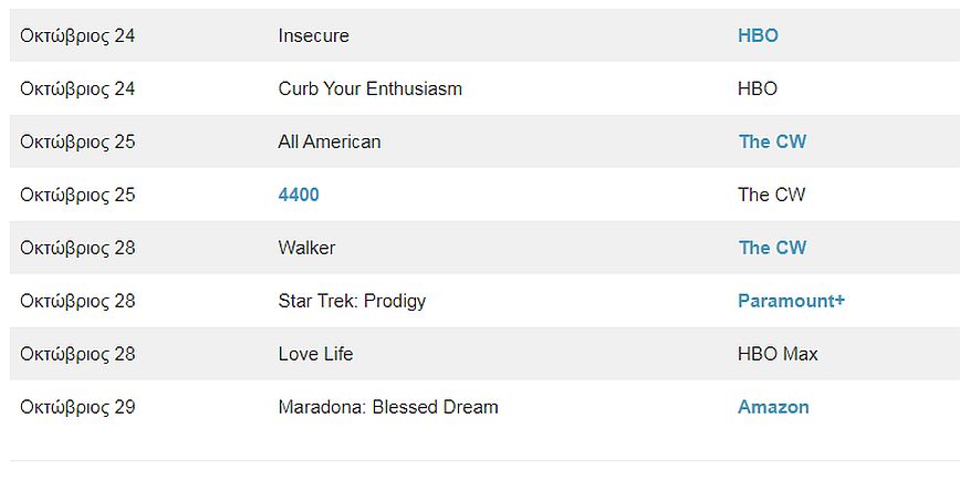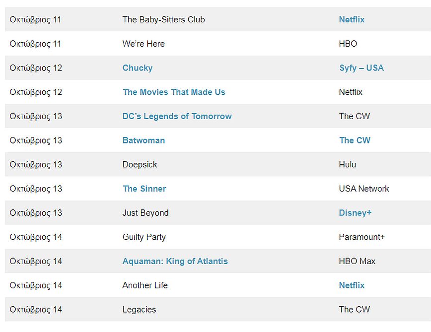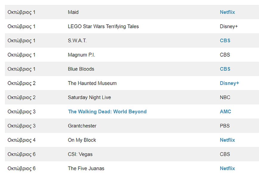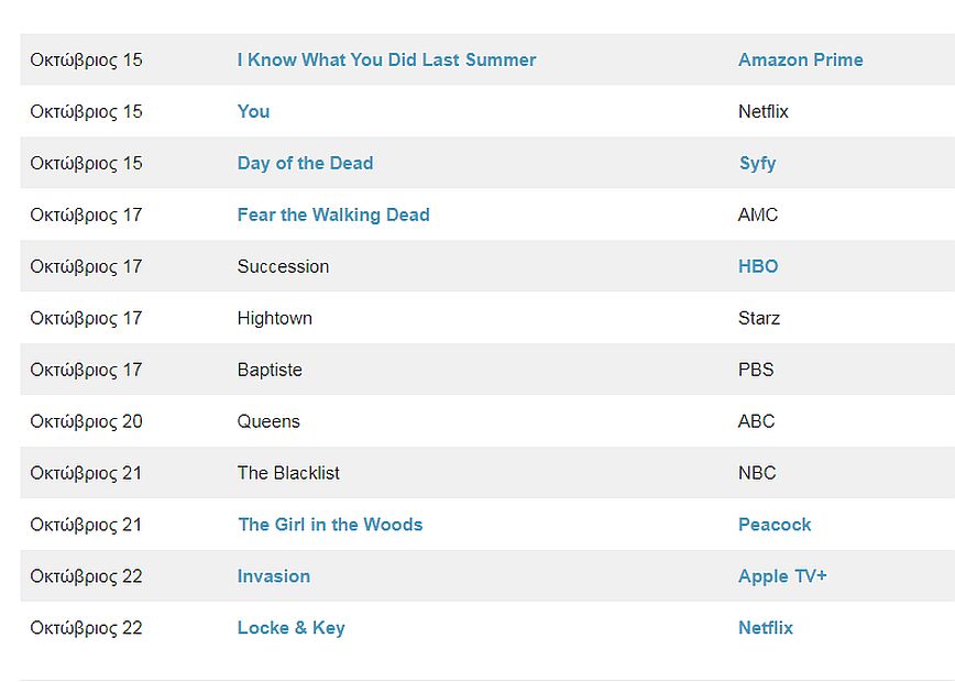Ο Οκτώβριος συνδέεται με το Halloween στην pop κουλτούρα, έτσι όπως είναι λογικό οι Horror σειρές αυτόν τον μήνα είναι αρκετές. Μάλιστα ο υπερφορτωμένος με νέο υλικό μήνας θα έχει αρκετές επιστροφές αγαπημένων σειρών αλλά και τον ερχομό νέων.