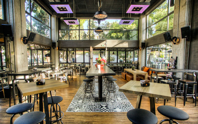 Με υψηλού επιπέδου αισθητική και βιομηχανικό design -κυρίαρχα στοιχεία το σίδερο, το ξύλο και οι μεγάλες γυάλινες επιφάνειες που επιτρέπουν στον ήλιο να ζεσταίνει το χώρο- το Saint’s Bar & Pizza, αποτελεί ιδανική επιλογή για όλες τις ώρες της ημέρας.