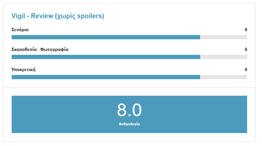 «Σφτιχτοδεμένο», σκοτεινό και ενίοτε αποπνικτικό, το Vigil συνδυάζει επιδέξια τόσο αστυνομική όσο και κατασκοπική πλοκή, χωρίς να του λείπουν οι απαραίτητες πολιτικές «πινελιές».