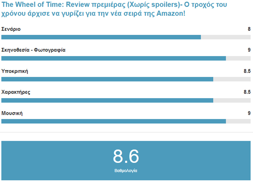 Τα πρώτα 3 επεισόδια του WOT μας πρόσφεραν μια θετική πρώτη μάτια στον φανταστικό κόσμο του Jordan, με την σκηνοθεσία, τις ερμηνείες και την μουσική να είναι σίγουρα από τα στοιχεία που ξεχώρισαν Από την άλλη θεωρώ ότι ο ρυθμός του πρώτου επεισοδίου ήταν αρκετά γρήγορος, κάτι που ίσως να μην σου επιτρέπει να γνωρίσεις αρκετά καλά τους χαρακτήρες, οι οποίοι σίγουρα είναι ενδιαφέροντες.