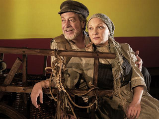 «Το βιολιστή στη στέγη» τον παρακολουθήσαμε το 1997 στο Αθήναιον με το Θανάση Βαλτινό στο ρόλο του Τεβιέ. Ένας ρόλος κοστούμι στα μέτρα του, που με υποκριτική ωριμότητα υποδύεται και τώρα στο Badminton πλαισιωμένος από ένα πολυπληθή θίασο. Με μάτια γελαστά, εύθυμα, λυπημένα και με μια διάχυτη μελαγχολία, φοβισμένα εκφράζει μια κλίμακα συναισθημάτων που αγγίζει τον θεατή. Έτσι του ανατρέπεται η διάθεση και ευθυμία ακολουθεί η πικρία και η συγκίνηση.