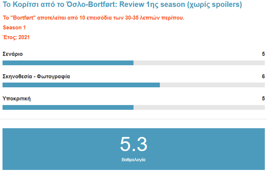 Η αλήθεια είναι πως όταν διάβασα την πλοκή περίμενα να δω μία σειρά πιο πολύ μυστηρίου ή γενικά αστυνομική για την εύρεση της Πία. Βέβαια η σειρά «Το Κορίτσι από το Όσλο – Bortført» είναι καθαρά πολιτική. Κάποιες στιγμές μου έδινε την εντύπωση ότι η ιστορία απλά γράφτηκε μόνο και μόνο για να δείξουμε στον κόσμο τι συμβαίνει στο Ισραήλ.