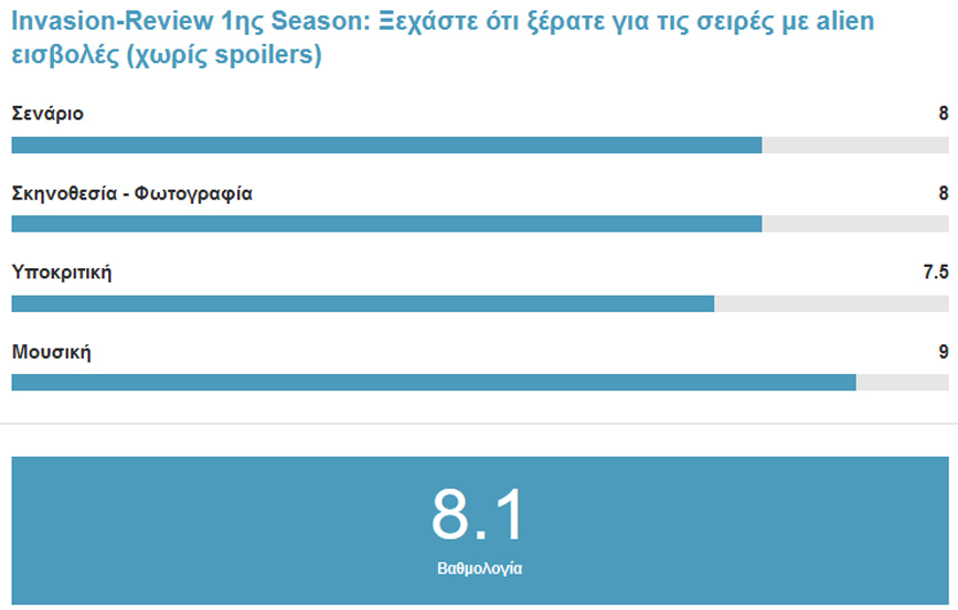 Η ατμόσφαιρα και η μουσική ίσως αξίζουν τον μεγαλύτερο βαθμό σε μια τέτοια σειρά καθώς έχει γίνει πολύ καλή δουλειά από τους πιο επαγγελματίες του χώρου, θυμίζοντας μας πως πρέπει μελλοντικά να γυρίζονται τέτοιες σειρές. Με λίγα λόγια πρόκειται για μια σειρά που πάει το ανθρωποκεντρικό alien θέμα ένα βήμα μπροστά.