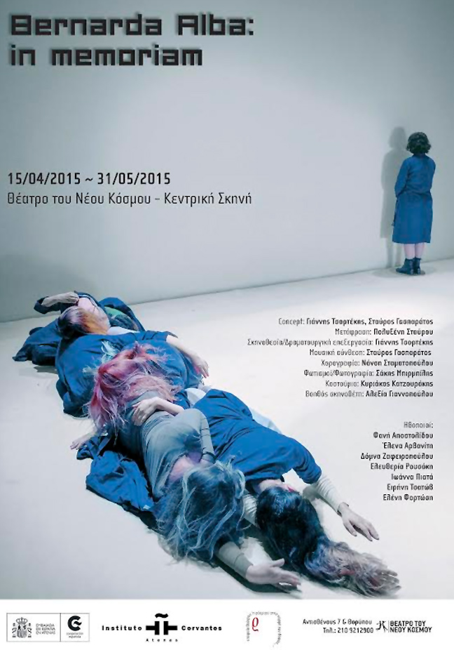 Βασισμένη στο θεατρικό έργο του Φ.Γ.Λόρκα «Το σπίτι της Μπερνάρδα Άλμπα» και εστιασμένη στον εγκλεισμό που οδηγεί σε αποκλεισμό και καταστολή, η performance «Bernarda Alba: in memoriam», σε σκηνοθεσία Γιάννη Τσορτέκη, παίζεται από τις 15 Απριλίου έως τις 31 Μαΐου στο Θέατρο του Νέου Κόσμου υπό την Αιγίδα της Πρεσβείας της Ισπανίας και του Ινστιτούτου Θερβάντες.