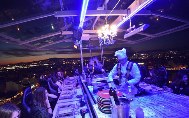 Συγκεκριμένα, στην Τεχνόπολη όσοι αγαπάμε την περιπέτεια, τη γαστρονομία και την πόλη (μας), πλέον μπορούμε να παραδοθούμε σε ένα δείπνο αφ’ υψηλού με συγκλονιστική θέα!