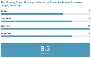 Το The Morning Show αποτελεί μια πολύ καλή δραματική σειρά με την οποία δύσκολα κάποιος απλός θεατής θα ταυτιστεί, ωστόσο θίγει κοινωνικά ζητήματα για τα οποία ακούμε όλο και πιο συχνά και σίγουρα η σειρά βοηθά στην ευαισθητοποίηση σχετικά με τέτοια ζητήματα. Η ιστορία εξελίσσεται άλλες φορές αργά και σε άλλα ζητήματα τρέχει με αποτέλεσμα κάποιες στιγμές να επικρατούν υπερβολές. Μεγάλο μέρος της επιτυχίας της σειράς είναι οι χαρακτήρες της που πραγματικά είναι πολυδιάστατοι, περίπλοκοι και απρόβλεπτοι τις περισσότερες φορές. Αυτό δίνει μια ρεαλιστικότητα στην σειρά παρουσιάζοντας όλες τις πλευρές σχετικά με τα ζητήματα που θίγει.