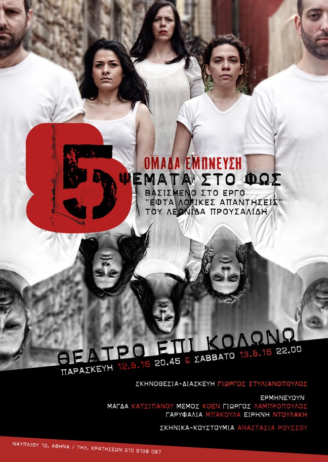 Η παράσταση «Πέντε ψέματα στο φως» ανεβαίνει την Παρασκευή 12 Ιουνίου 2015 στις 20:45 και το Σάββατο, 13 Ιουνίου 2015 στις 22:00.