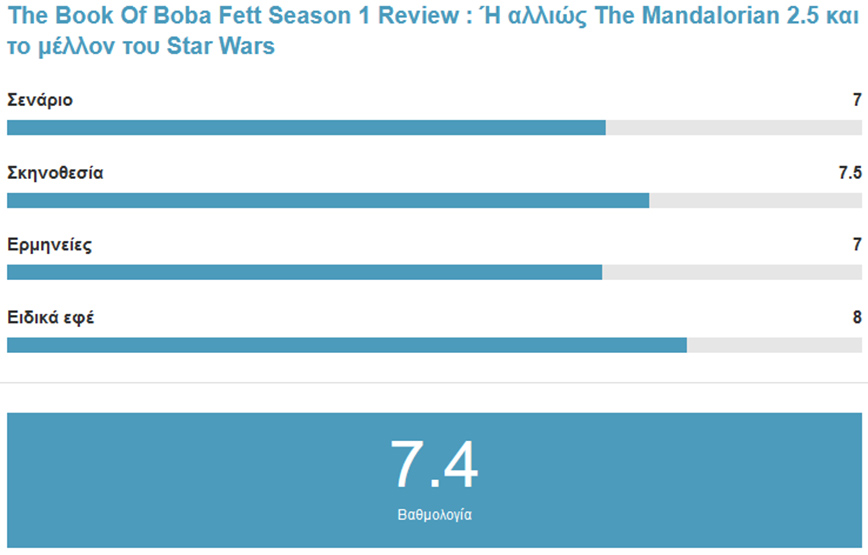 Η σεζόν αποτελείτε από 7 επεισόδια όπου αρχικά νιώθουμε ότι θα ακολουθήσει τα βήματα των 2 σεζόν του Mandalorian αλλα κάπου στα μισά ανακαλύπτουμε ότι ίσως είναι μια κακή κόπια του. Ένα filler show για την αινιγματική φιγούρα του Boba όπου απλά θα ικανοποιήσει τους σκληρούς φανς και μόνο, κάνοντας όλους τους υπόλοιπους να αναπολούν τον Mandalorian. Κάπου εκεί στα μισά της σεζόν όμως, έρχεται η ανατροπή και νιώθουμε ότι παρακολουθούμε το The Mandalorian 2.5, καθώς η ιστορία μας φέρνει σε όλα όσα αγαπήσαμε πέρυσι χάρη του Grogu, του Luke Skywalker, της Ahsoka και πολλών άλλων εκπλήξεων που αξίζει να ανακαλύψεις από μόνος σου, νιώθοντας ότι έχουμε ταξιδέψει στον χρόνο και βλέπουμε κάποιου είδους κρυφά και ακυκλοφόρητα πλάνα του George Lucas από το τέλος της αυθεντικής τριλογίας.