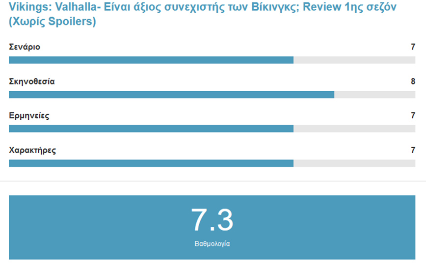 Η σειρά σίγουρα δεν έφερε κάτι το καινούργιο στο είδος, μπορούμε όμως να πούμε πως είναι μια τίμια προσπάθεια με αρκετό ενδιαφέρον. Το “Vikings: Valhalla” φαίνεται πως έχει εξασφαλίσει άλλες δύο σεζόν έτσι ενώ η 1η μένει σε Cliffhanger οι πιθανότητες για συνέχεια είναι δεδομένες.