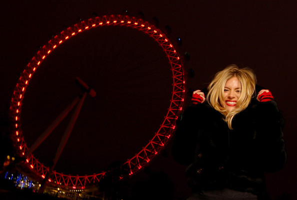 Η γνωστή ηθοποιός Sienna Miller ανέλαβε να αλλάξει τα φώτα της γνωστής ρόδας του Λονδίνου London Eye από μπλε σε κόκκινα.