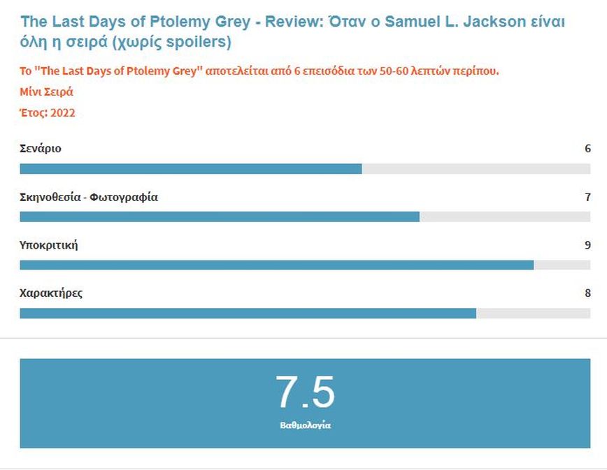 Όπως έχει αναφερθεί ανάμεσα στις σειρές του Μαρτίου που τραβούν το ενδιαφέρον είναι και η σειρά «The Last Days of Ptolemy Grey – Οι Τελευταίες Μέρες του Πτολεμαίου Γκρέι» κυρίως λόγω Samuel L. Jackson και Apple TV+.