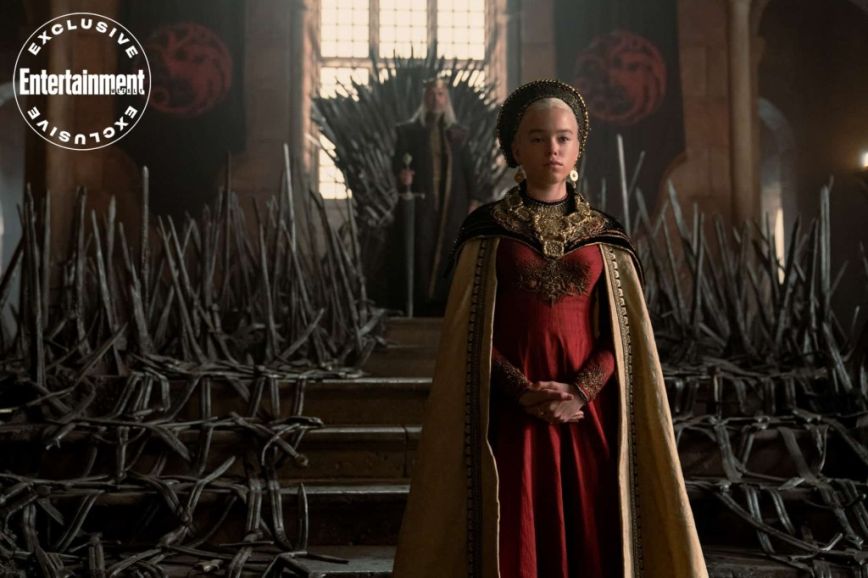 Ο Θρόνος: Ο Iron Throne είναι αρκετά διαφορετικός απ’ ότι στο Game of Thrones. Είναι πιο κοντά στο πως τον φαντάστηκε ο George R.R. Martin στα βιβλία του περιγράφοντας τον ως ένα σύμβολο νίκης σφυρηλατημένο από τα ξίφη των ηττημένων εχθρών του Aegon the Conqueror. Η μικρή Rhaenyra στέκεται μπροστά από τον Θρόνο και τον πατέρα της, Viserys, ξέροντας πως κάποια στιγμή θα καθίσει σε αυτόν. Ίσως και όχι…