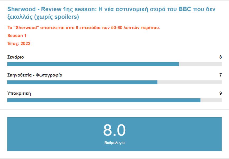 Η σειρά «Sherwood» είναι από αυτές που σε τραβάνε μόνο και μόνο από την υποκριτική, όχι ενός, αλλά σχεδόν ολόκληρου του cast. Βέβαια αυτό δεν σημαίνει πως στα άλλα σημεία ήταν αδύναμη, αλλά στο συγκεκριμένο κομμάτι για άλλη μία φορά παραγωγή του BBC, ήταν εξαιρετική.