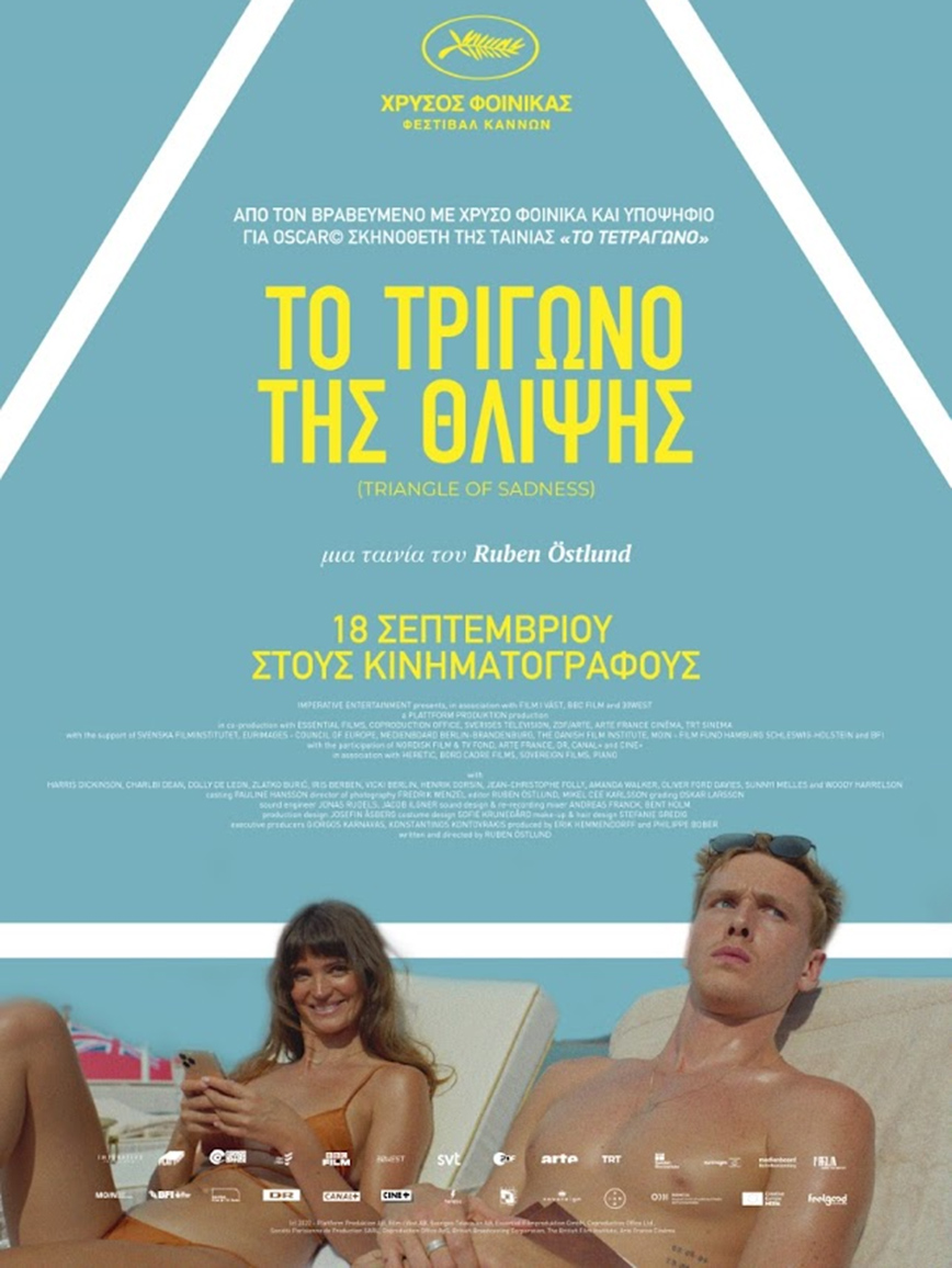 Σε πανελλήνια πρεμιέρα στη Χιλιαδού, τη Δευτέρα 5 Σεπτεμβρίου (στις 20.30), θα παρουσιαστεί η ταινία το «Τρίγωνο της Θλίψης» («Triangle of Sadness») στο πλαίσιο του 28ου Διεθνές Φεστιβάλ Κινηματογράφου της Αθήνας Νύχτες Πρεμιέρας.