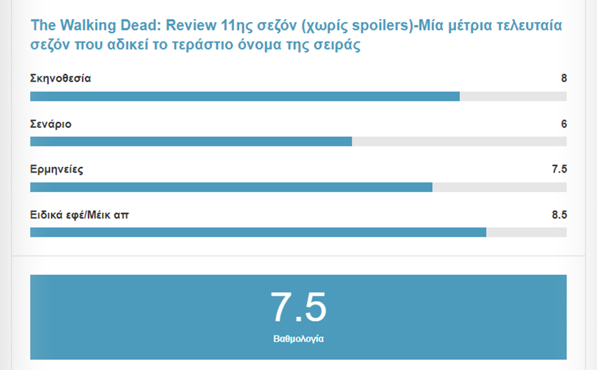 Φυσικά, το finale είναι μία τελείως διαφορετική υπόθεση, καθώς ήταν ένα επεισόδιο-φόρος τιμής στους χαρακτήρες και στη σειρά. Αν με ρωτάτε, πολλά θα μπορούσαν να είναι διαφορετικά τόσο στην 11η σεζόν, όσο και σε περασμένους κύκλους. Οι αμέτρητοι διακοσμητικοί χαρακτήρες χωρίς τη δική τους ιστορία, η σιγουριά που όλοι μας είχαμε πλέον πως οι βασικοί χαρακτήρες θα την βγάλουν καθαρή παρά τους κινδύνους της Αποκάλυψης, η επανάληψη παρόμοιων ιστοριών, ο συνεχής πόλεμος…Είναι αρκετά τα μείον.