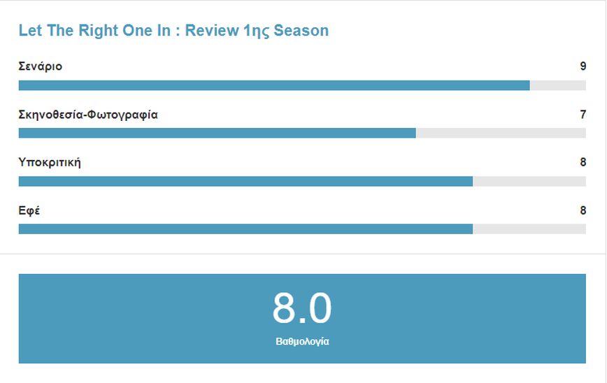 Ακόμα μια ταινία έγινε σειρά. Πρόκειται για την σειρά «Let The Right One In» η οποία στην Ελλάδα προβάλλεται από την COSMOTE TV και κάνει πάταγο όπως και στο εξωτερικό. Η σειρά βασίζεται στην ταινία του 2008 η οποία είχε κυκλοφορήσει με ελληνικό τίτλο «Άσε το κακό να μπει».