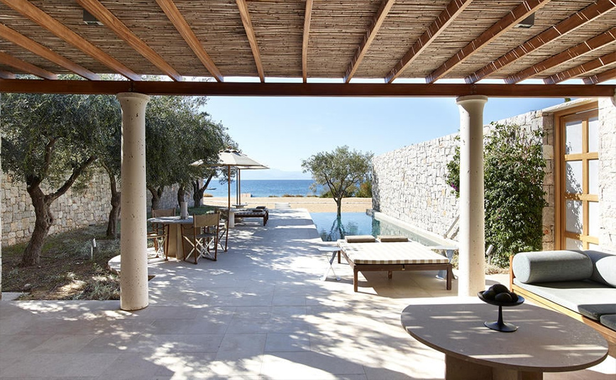 «Η εκπληκτική πανοραμική θέα στο Αιγαίο Πέλαγος και την Πελοπόννησο σας περιμένει σε αυτή την ιδιωτική νησιωτική όαση που σχεδίασε και επιμελήθηκε ο ιδρυτής της Alpha Industries Miles Bron», γράφει χαρακτηριστικά η αγγελία για το ακίνητο των 29.000 τ.μ.